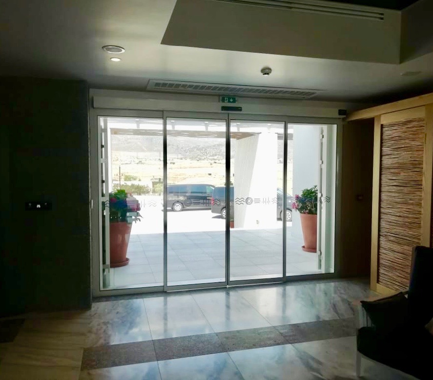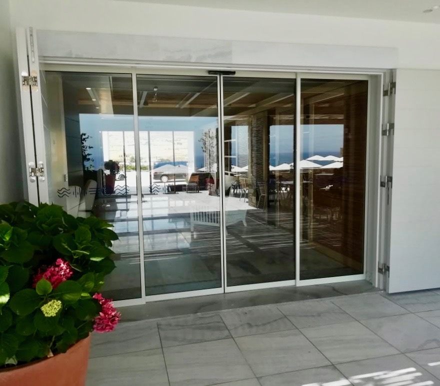 Στην κεντρική είσοδο του ξενοδοχείου Summer Senses Luxury Resort - το μεγαλύτερο και πιο πολυτελές ξενοδοχείο στην Πάρο - η εταιρία μας εγκατέστησε δύο αυτόματες δίφυλλες πόρτες με μηχανισμούς της ιταλικής εταιρίας Sesamo. Οι συρόμενες πόρτες ταιριάζουν σε κάθε τύπο εγκατάστασης, προσφέροντας υψηλό ποιοτικό επίπεδο, απλότητα στη χρήση με ένα κομψό design που προσαρμόζεται σε κάθε επιθυμία και ανάγκη.
