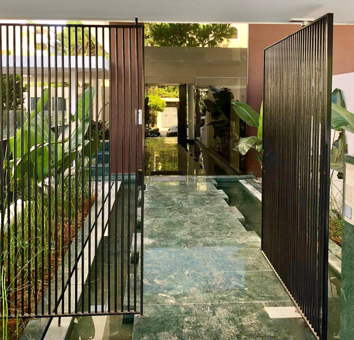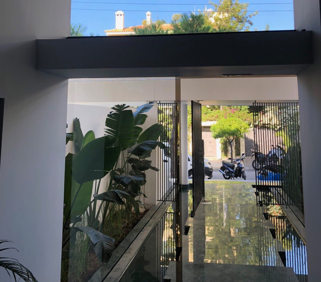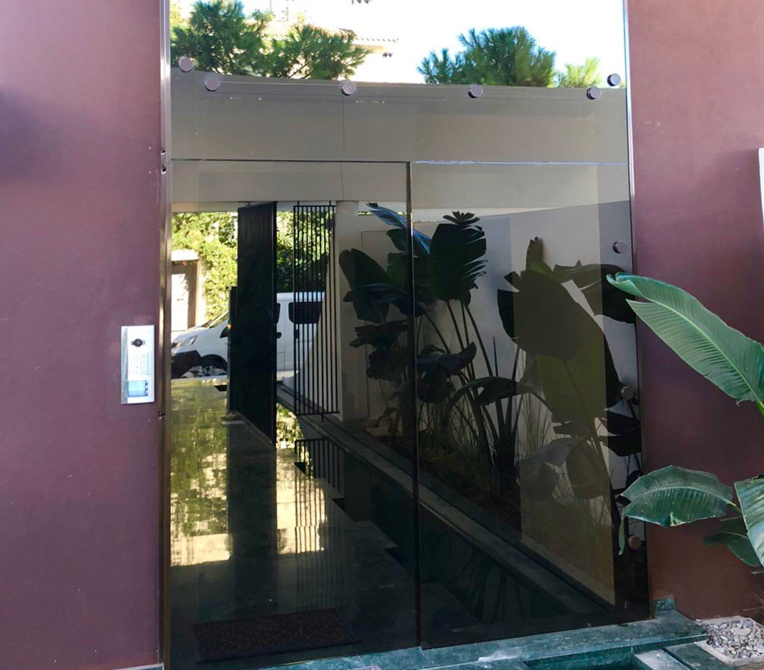 Η εταιρία μας κατασκεύασε και εγκατέστησε αυτόματη συρόμενη μονόφυλλη πόρτα στην είσοδο της πολυκατοικίας h_34. Η επιβλητική κατοικία «h_34» στη Βούλα διεκδικεί το Ευρωπαϊκό Βραβείο Σύγχρονης Αρχιτεκτονικής Mies van der Rohe και είναι σχεδιασμένη από το αρχιτεκτονικό γραφείο «314 Architecture Studio». Ο μηχανισμός που χρησιμοποιήθηκε είναι ο LH 100 της ιταλικής εταιρίας Sesamo. Η Ergomatic σχεδίασε την πόρτα εισόδου, προσαρμοσμένη στο επιβλητικό ύφος της κατοικίας και τοποθέτησε ως προέκταση στο επανω μέρος σταθερό φεγγίτη με το αντίστοιχο τζάμι.