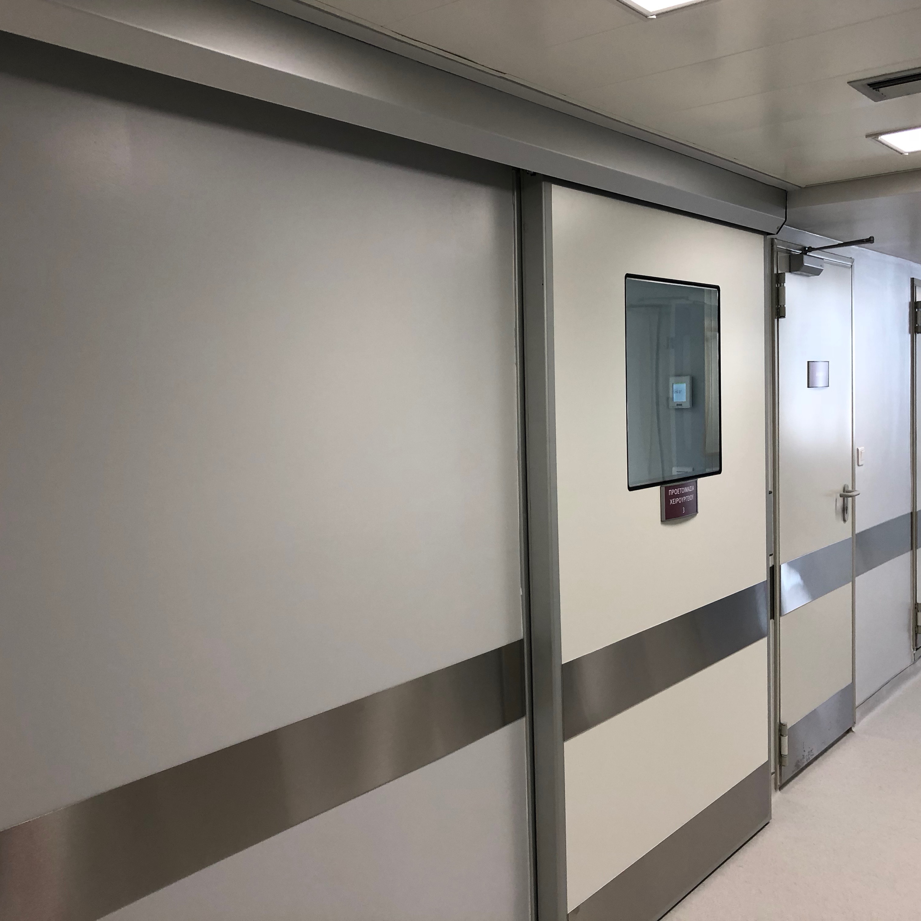 Το Ταμείο Υγείας Προσωπικού Εθνικής Τράπεζας προχώρησε σε ανακαίνιση των χειρουργείων του 4ου ορόφου, η εταιρεία μας σε συνεργασία με την DG Thira εγκατέστησε συνολικά επτά πόρτες της σειράς Hermetic του εργοστασίου Sesamo. Οι πόρτες αυτές έχουν όλες τις απαραίτητες ιδιότητες για εγκατάσταση σε χώρους όπου η αντιμικροβιακή προστασία και η ερμητική σφράγιση είναι προαπαιτούμενα. Τα υλικά φέρουν πιστοποίηση από τον Ιταλικό εργαστηριακό οίκο Giordano και περνούν αυστηρούς ελέγχους πριν την τελική τους πιστοποίηση.