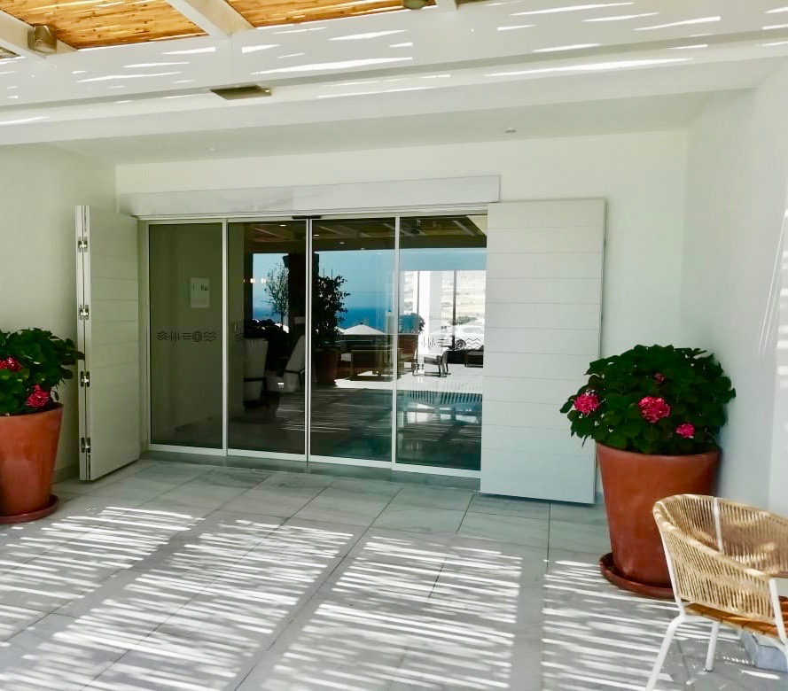 Στην κεντρική είσοδο του ξενοδοχείου Summer Senses Luxury Resort - το μεγαλύτερο και πιο πολυτελές ξενοδοχείο στην Πάρο - η εταιρία μας εγκατέστησε δύο αυτόματες δίφυλλες πόρτες με μηχανισμούς της ιταλικής εταιρίας Sesamo. Οι συρόμενες πόρτες ταιριάζουν σε κάθε τύπο εγκατάστασης, προσφέροντας υψηλό ποιοτικό επίπεδο, απλότητα στη χρήση με ένα κομψό design που προσαρμόζεται σε κάθε επιθυμία και ανάγκη.