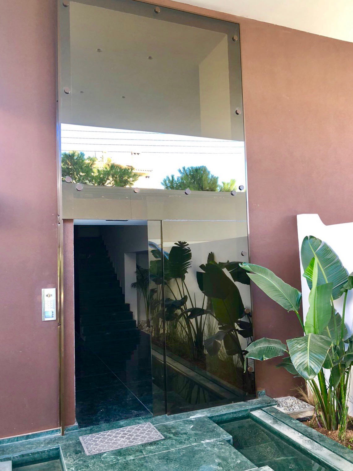 Η εταιρία μας κατασκεύασε και εγκατέστησε αυτόματη συρόμενη μονόφυλλη πόρτα στην είσοδο της πολυκατοικίας h_34. Η επιβλητική κατοικία «h_34» στη Βούλα διεκδικεί το Ευρωπαϊκό Βραβείο Σύγχρονης Αρχιτεκτονικής Mies van der Rohe και είναι σχεδιασμένη από το αρχιτεκτονικό γραφείο «314 Architecture Studio». Ο μηχανισμός που χρησιμοποιήθηκε είναι ο LH 100 της ιταλικής εταιρίας Sesamo. Η Ergomatic σχεδίασε την πόρτα εισόδου, προσαρμοσμένη στο επιβλητικό ύφος της κατοικίας και τοποθέτησε ως προέκταση στο επανω μέρος σταθερό φεγγίτη με το αντίστοιχο τζάμι.
