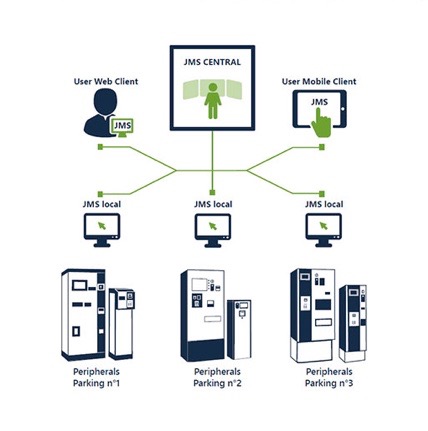 Το λογισμικό διαχείρισης στάθμευσης JMS είναι ένα αποδοτικό, φιλικό στον χρήστη εργαλείο το οποίο επιτρέπει την διαχείριση πολλαπλών χώρων ακόμα και σε διαφορετικές περιοχές από ένα και μόνο σημείο. Είναι πλήρως επεκτάσιμο και ευπροσάρμοστο σε οποιαδήποτε απαίτηση και τύπο παρκινγκ, από το πιο μικρό μέχρι το πιο σύνθετο με υψηλή επισκεψιμότητα και πλήθος κινήσεων.
