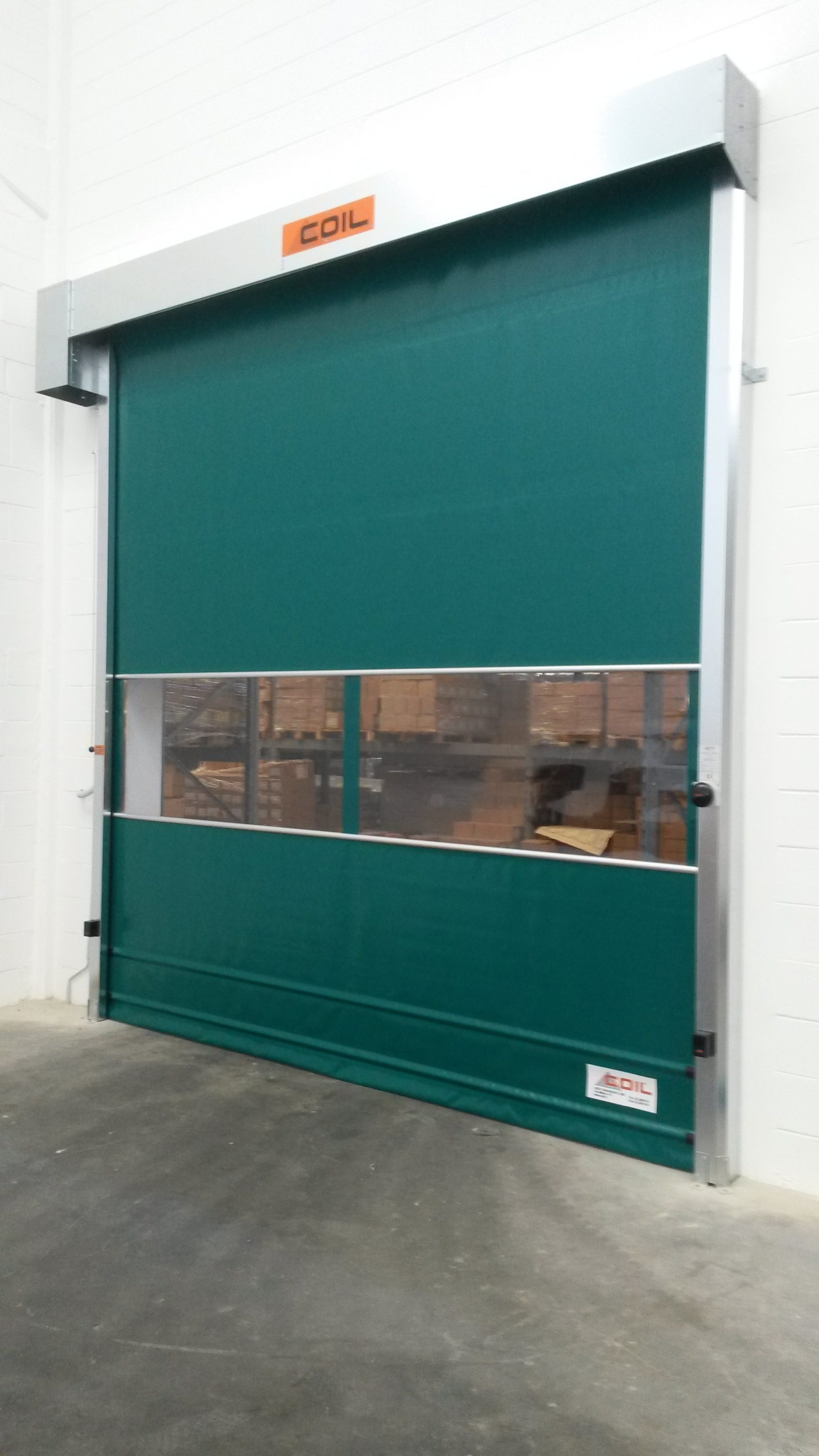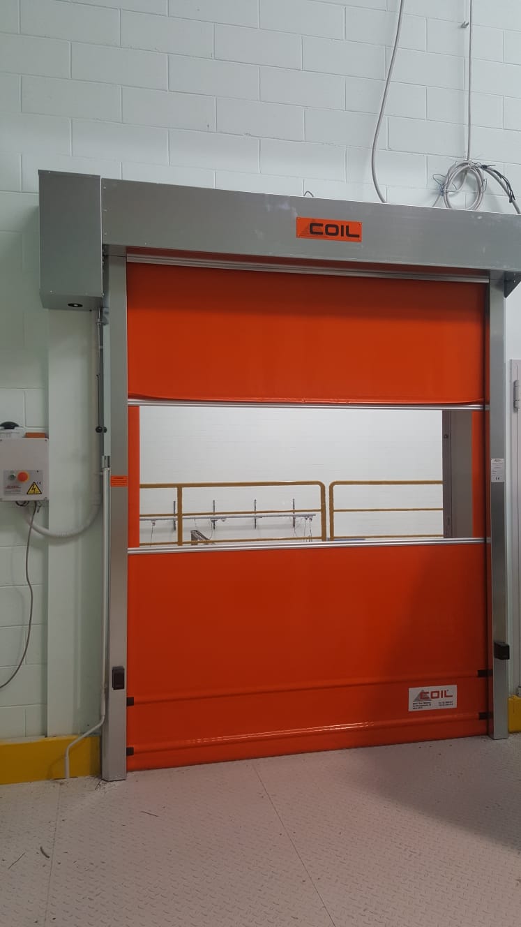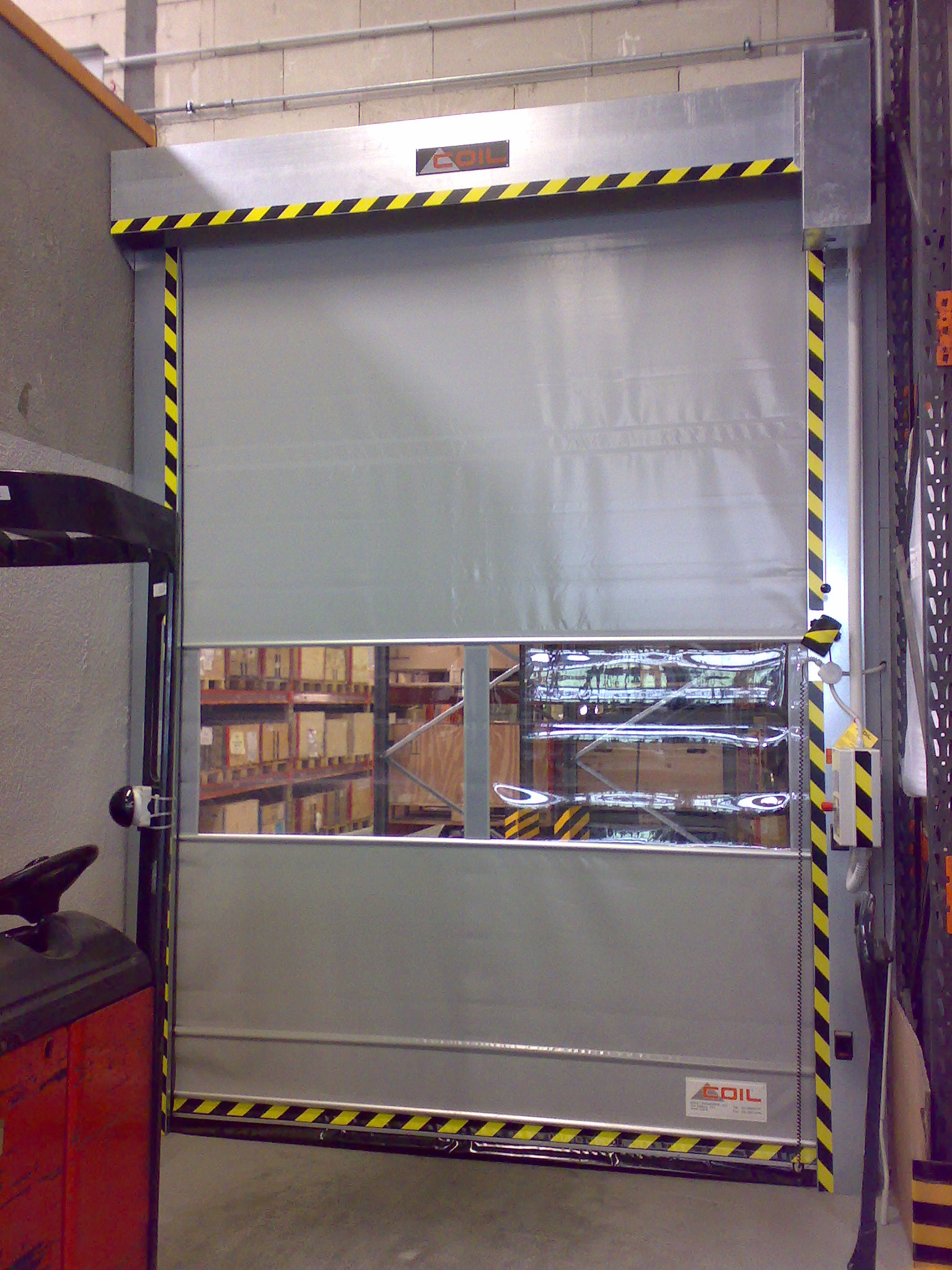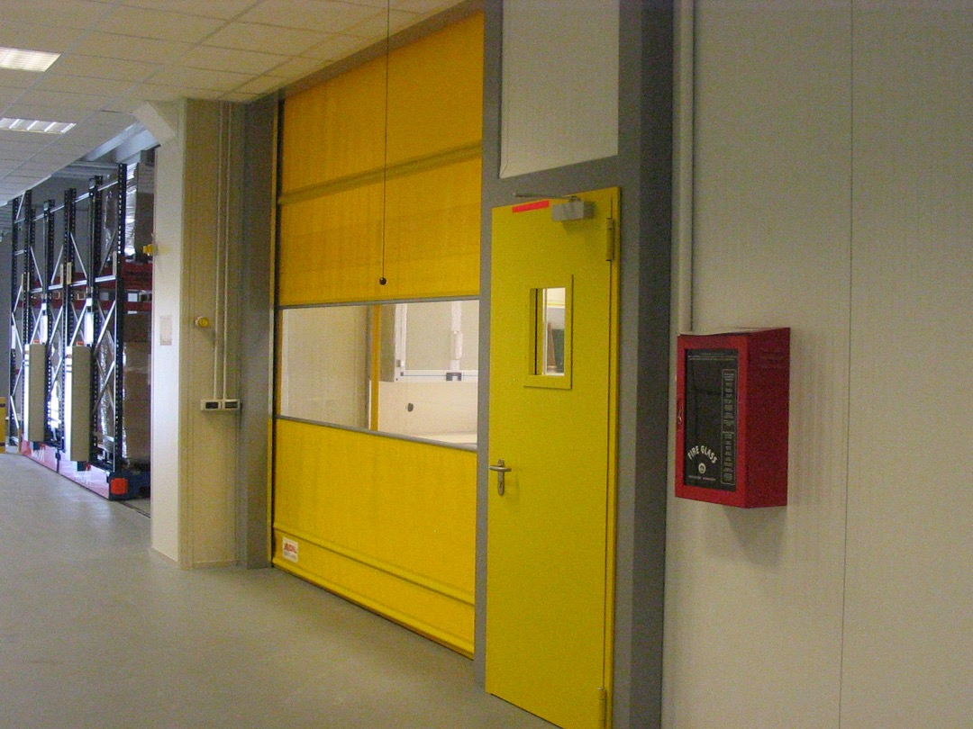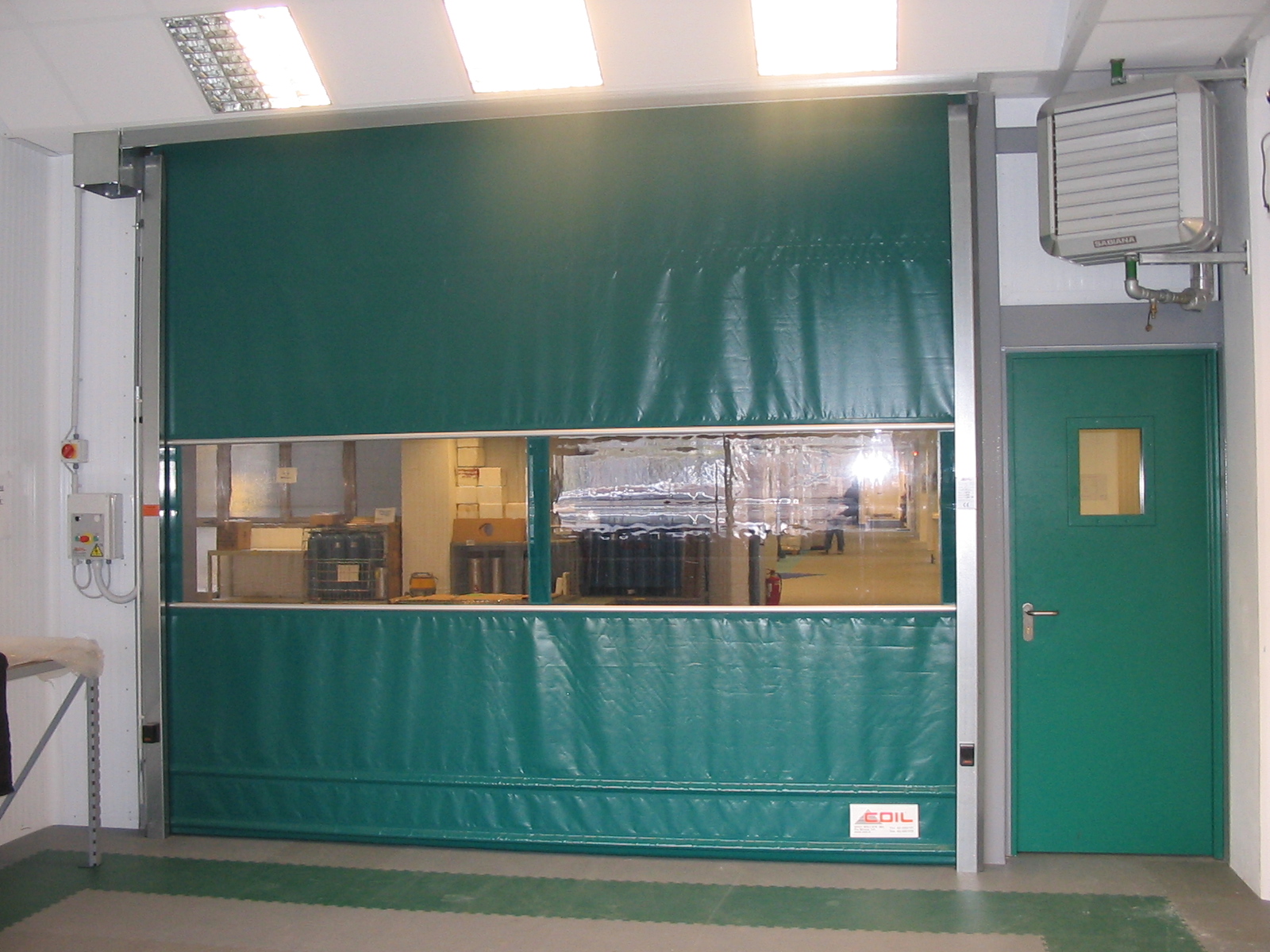 Kατασκευασμένο από αυτοεπίπεδη διπλής στρώσης ελασματοποιημένο πολυεστέρα ύφασμα κατηγορίας 2, με ένα σαφές κεντρικό τμήμα. Τα πάνελ των θυρών είναι εναλλάξιμα για γρήγορη και εύκολη αντικατάσταση σε περίπτωση βλάβης. Τα πάνελ είναι διασυνδεδεμένα με ανοδιωμένα προφίλ αλουμινίου. Οι κουρτίνες διατίθενται σε διάφορα χρώματα. Ένα διαφανές τμήμα PVC (ύψους 750 mm) για όραση ασφαλείας και εσωτερικό φωτισμό. Προαιρετικά πρόσθετα διαφανή τμήματα PVC, ή μια πλήρως διαφανή έκδοση έως 3000 x 3000 mm.