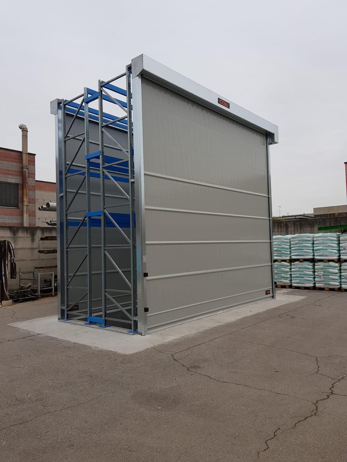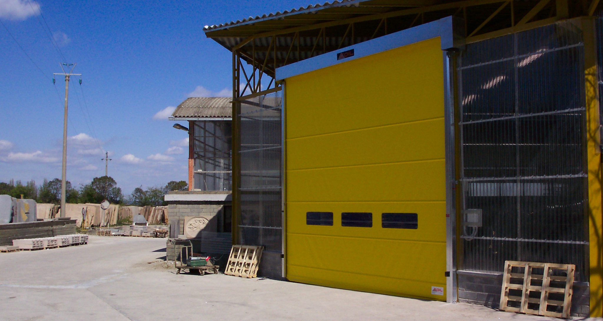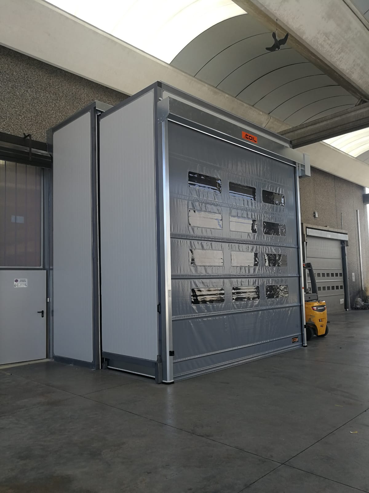 Αυτές οι μεγάλες εύκαμπτες θύρες / ταχυρολά, είναι σχεδιασμένες για μεγάλες εισόδους βιομηχανικών και εμπορικών κτιρίων, συμπεριλαμβανομένων εκείνων που απαιτούν υψηλή αντοχή στον αέρα. Αυτή η απαίτηση επιτυγχάνεται με τη χρήση κουρτινών βαρέως τύπου από πολυεστέρα που ενσωματώνουν σειρά οριζόντιων σωλήνων από χάλυβα.