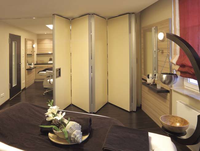 Είναι ένας γρήγορος και πρακτικός τρόπος για να χωρίσετε ένα δωμάτιο με την ενσωματωμένη πόρτα wicket σε ένα από τα πάνελ. Πρόκειται για την ιδανική λύση για ένα δωμάτιο που απαιτεί μέση ηχομόνωση. Τα πτυσσόμενα χωρίσματα Nüsing είναι ο έξυπνος συνδυασμός μιας συρόμενης / πτυσσόμενης πόρτας και ενός κινητού τοίχου.