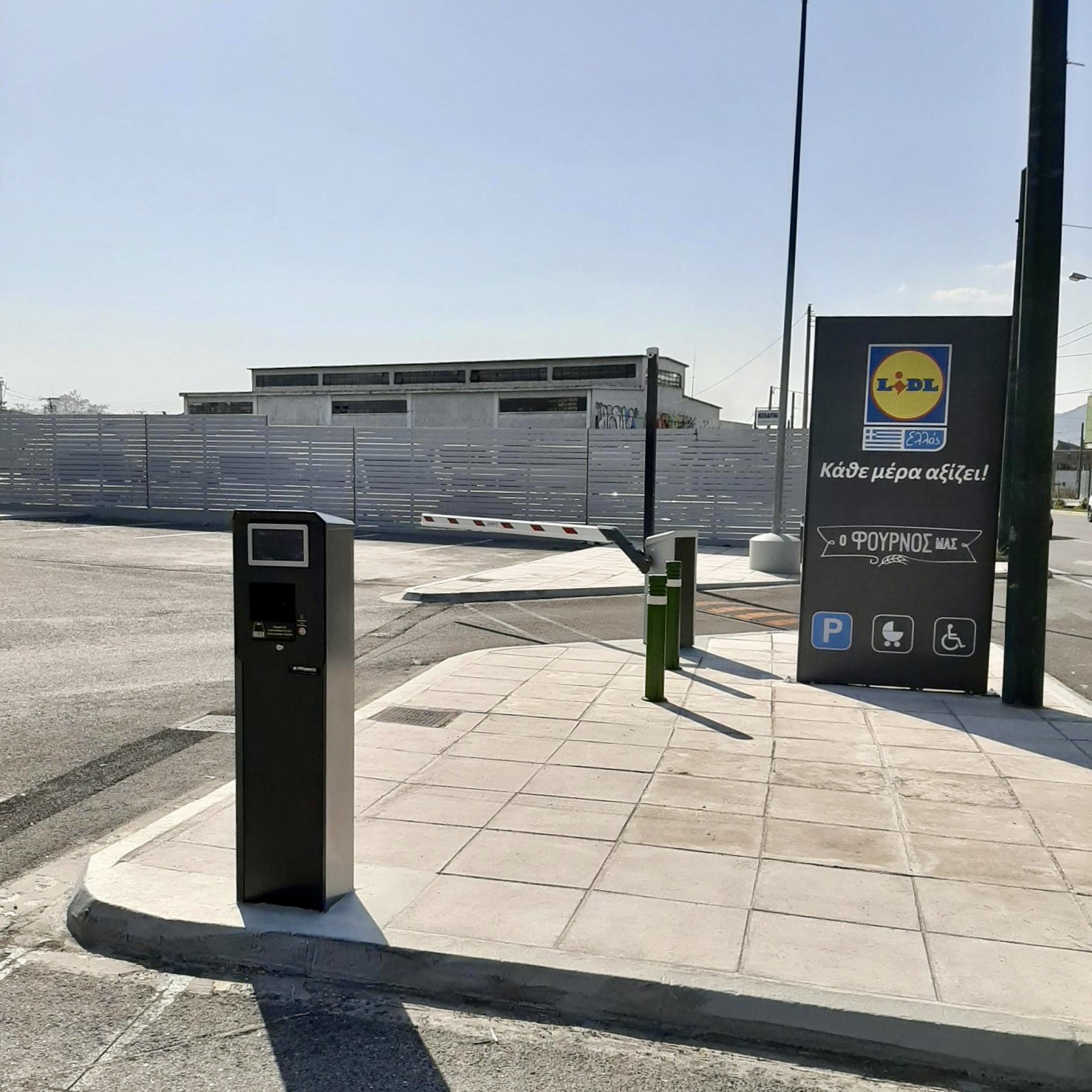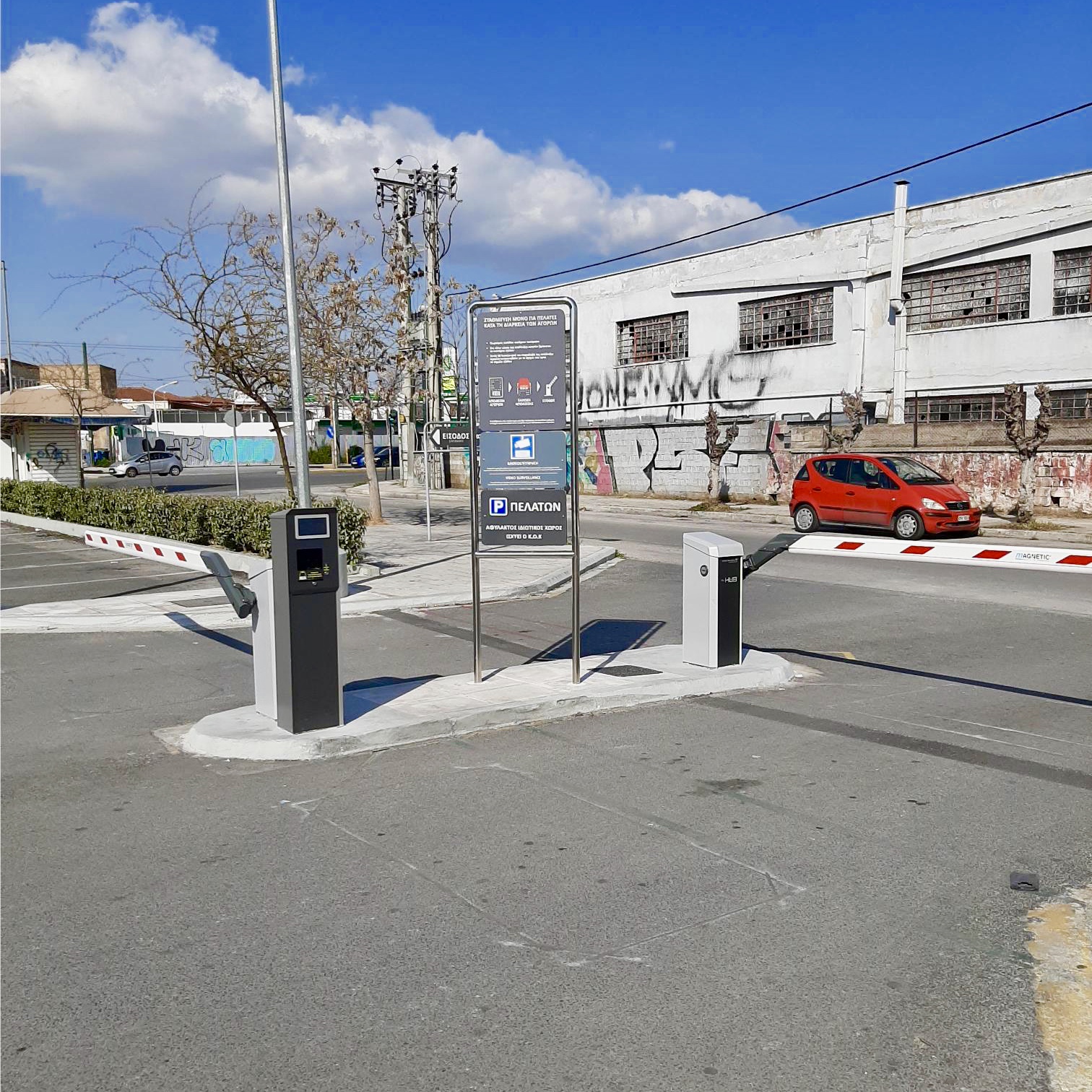 The system consists of at least two terminals that organize the entrance and exit of parking spaces. Upon entering the parking lot, the entrance terminal prints a ticket with a barcode. This ticket will later be presented to the barcode scanner in order to issue the exit ticket. The exit ticket is presented at the exit terminal to allow exit from the parking lot. In the event that the initial printed ticket is lost, it is possible to print a new one. In addition, the total residence time in the parking lot is fully monitored, allowing the possibility to extend the exit time.