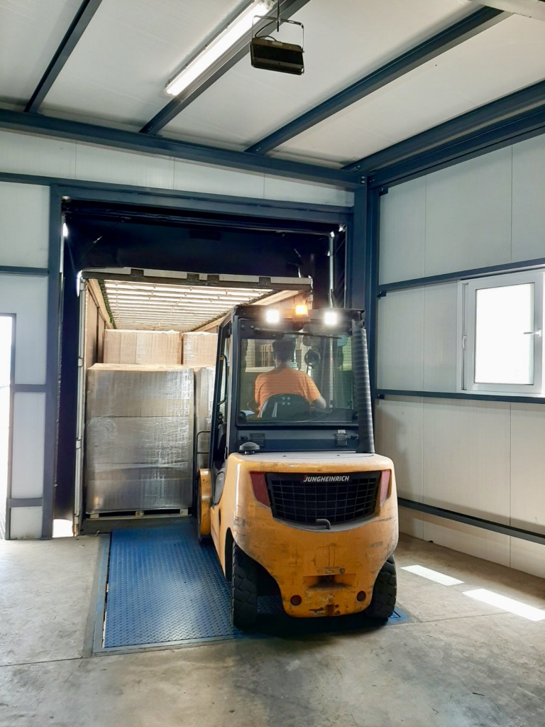 Ergomatic in collaboration with the PROMSTAHL factory offers you a wide range of choices in hydraulic or manual loading and unloading ramps with self-supporting monoblock anti-slip floor structure and split telescopic rim. Our company has installed outside the M. J. Maillis Group, PROMSTAHL loading and unloading ramps, a guaranteed option that ensures complete sealing of the gaps between the building and the vehicle. A solution that allows the safe completion of loading and unloading operations in industrial warehouses and areas without dock facilities.