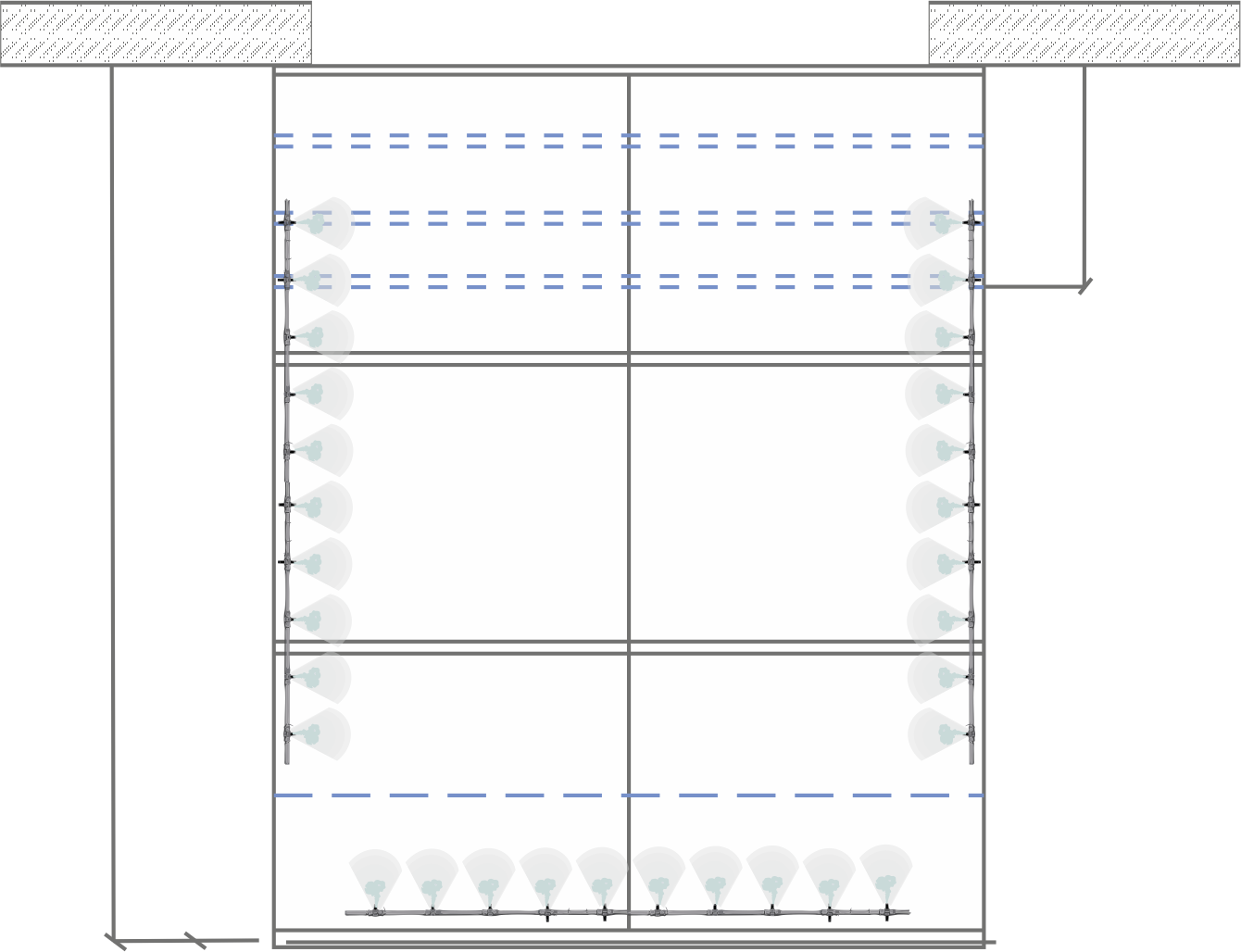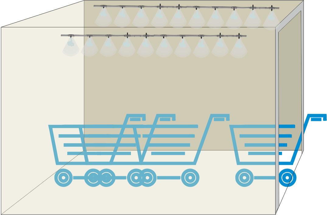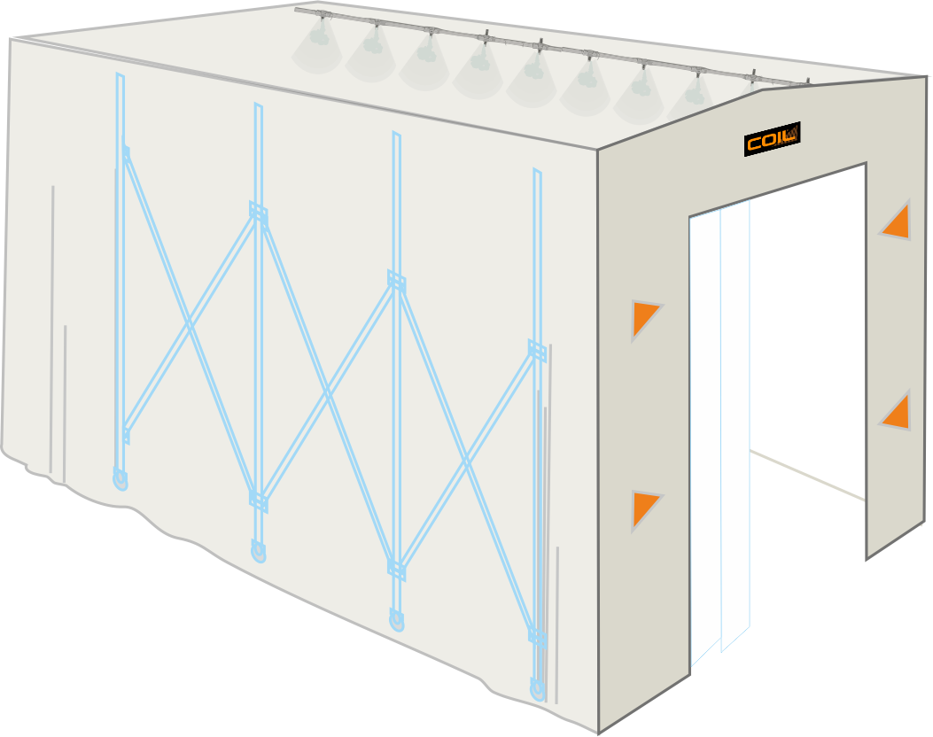 Designed to sanitize the entrance and exit of people, vehicles and goods, they are larger than permanent tunnels and are used, for example, in fruit and vegetable handling areas, for the sanitization of emergency vehicles, at the entrances of hospital units, in the loading and unloading areas of large-scale distribution.
